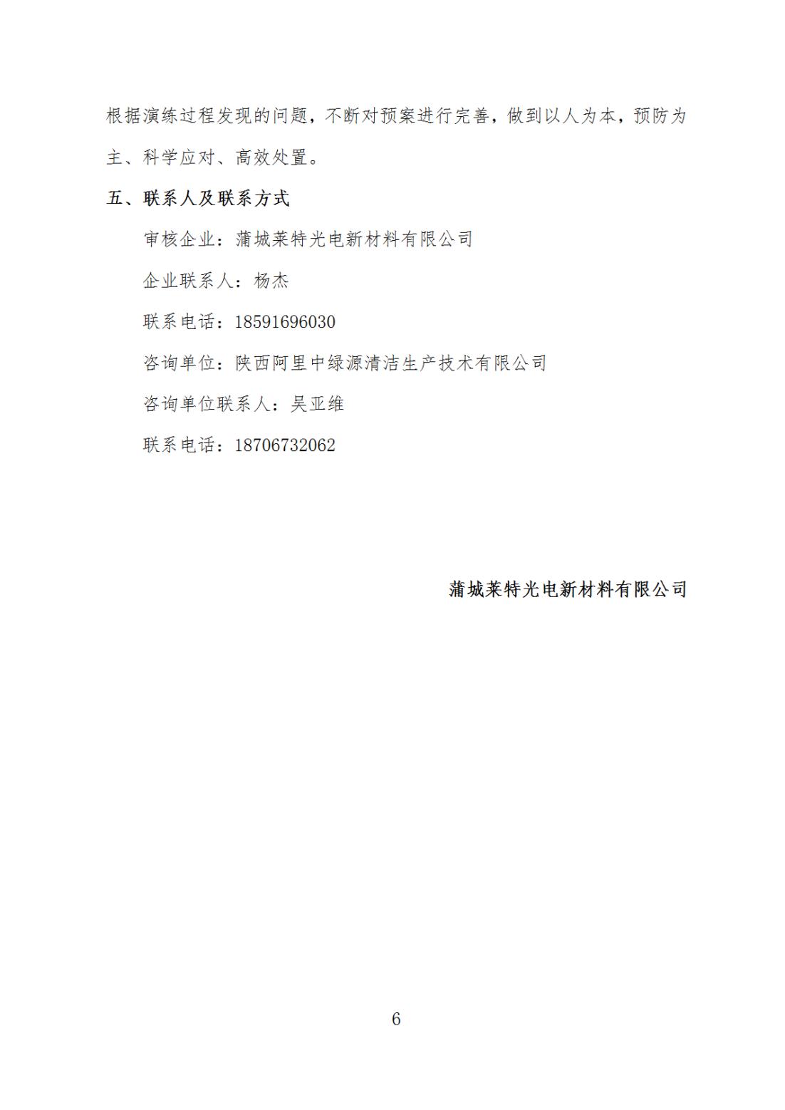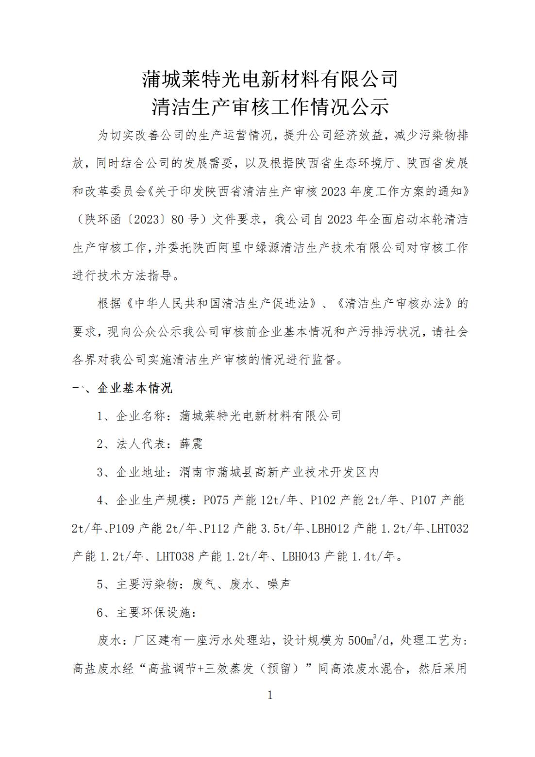 蒲城萊特光電新材料有限公司清潔生產(chǎn)審核工作情況公示